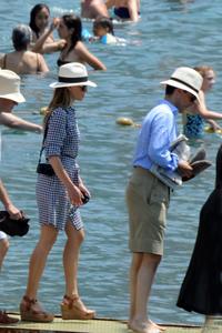 Showing off her fit physique, the Oscar-winning actress was spotted laying poolside in Italy today (July 14) as